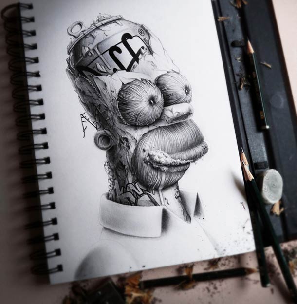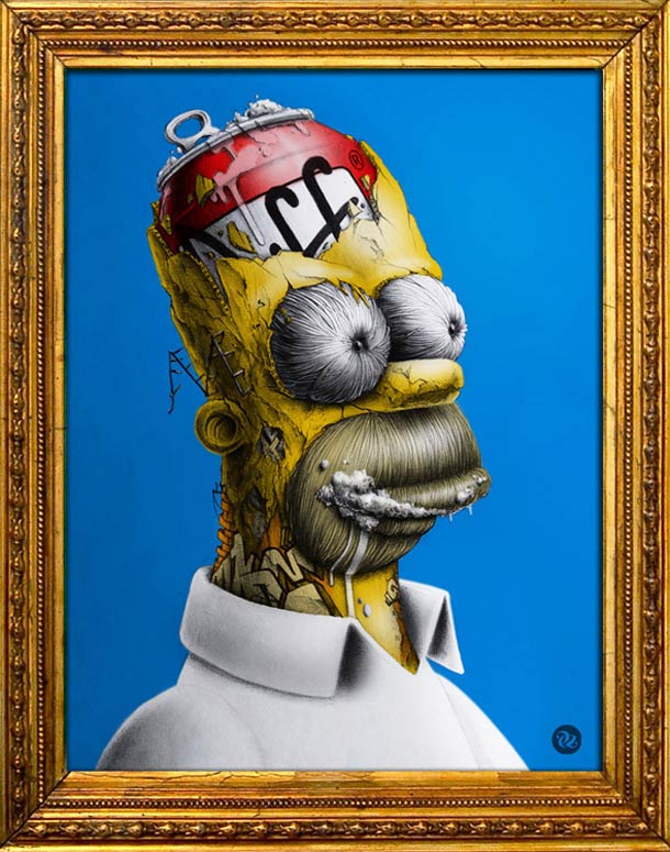 "Distroy", la más reciente serie del ilustrador y artista radicado en Nantes, PEZ, examina los íconos de la cultura pop, desde Mickey Mouse hasta Homero Simpson pasando por Kenny y Darth Vader.